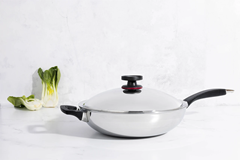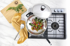 Descubra o prazer de cozinhar com estilo, tecnologia e versatilidade com a Royal Prestige® INNOVE™ Wok. Perfeito para saltear, fritar proteínas ou preparar legumes al dente. A Wok é produzida em aço inoxidável de grau cirúrgico e se destaca pelo design amplo, curvo e elegante. Compatível com fogões a gás, elétricos e de indução, garante uma distribuição de calor uniforme para receitas rápidas, saborosas e cheias de textura.