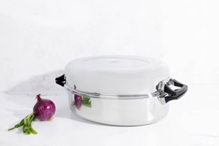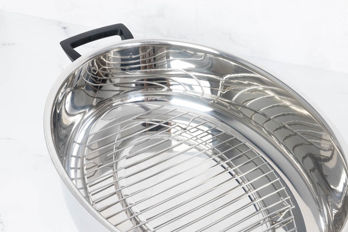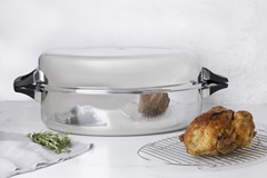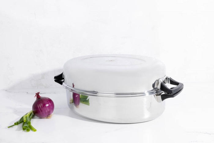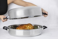Cook your turkey on the stove and prepare incredible feasts to share with your family any time of the year. The Royal Prestige® Oval Roaster is made with surgical stainless steel, with a 50-Year limited warranty. You can use it in the oven or on the stove. Dimensions: 18” x 13” / 46 cm x 33 cm.
