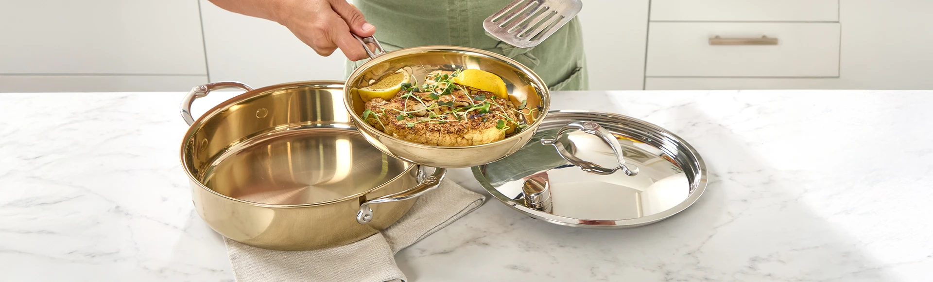 Los utensilios de alta calidad no solo son funcionales, sino que a menudo tienen un diseño elegante que puede añadir un toque sofisticado a tu cocina, como el Royal Prestige Elite Cooking System™.