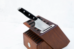 Hemos rediseñado el Royal Prestige® All-in-One Knife Block con madera de acacia naturalmente antibacteriana que además es resistente a la humedad. Preserva la integridad de las hojas de tu colección de cuchillos y almacena hasta 17 utensilios. Aprovecha su afilador integrado para bruñir (realinear el filo) y afilar (reparar por completo el filo) tus cuchillos lisos.