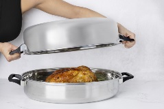 Cocina tu pavo sobre la estufa y prepara verdaderos banquetes para compartir en familia, en cualquier época del año. Fabricada con acero inoxidable grado quirúrgico y con garantía limitada de 50 años. Puedes usarla en el horno o sobre la estufa. Dimensión: 18” x 13” / 46 cm x 33 cm.